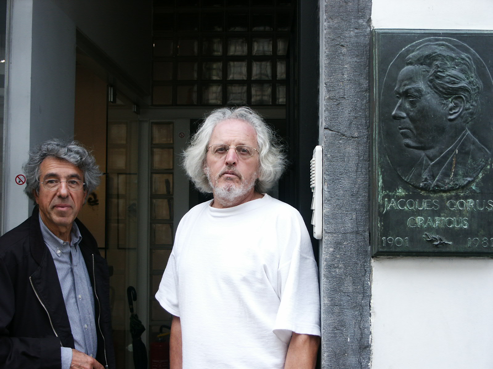 Avec Omar devant l’atelier de Jacques Gorus